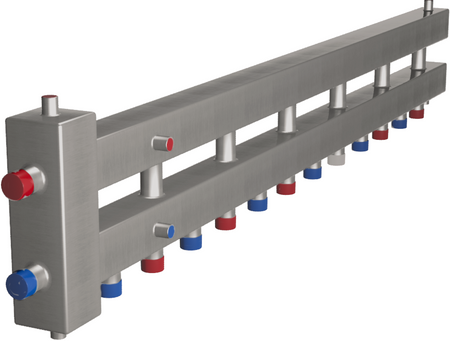 Обеспечение упрощения монтажа (расстояние между подающим и обратным отводами каждого потребителя, а также диаметры ориентированы на установку групп быстрого монтажа).