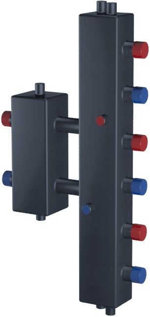 RISPA (РИСПА) ГРУ+КМВ 70-3В это гидравлический разделитель, который совмещен в одной конструкции с модульным коллектором. Устройство изготовлено из прочной углеродистой стали, толщиной 3 мм, потому отличается прочностью и надежностью. Способно выдержать давление до 6 бар и температуру теплоносителя до 110 .