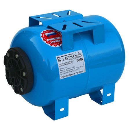 Гидроаккумуляторы торговой марки ETERNA серии Г, представленные в горизонтальном исполнении, выполнены в корпусе из углеродистой стали с покрытием порошковой эмалью и служат для гашения гидроударов в системе водоснабжения. Монтируются баки просто. Ассортимент моделей представлен баками различного номинального объема.