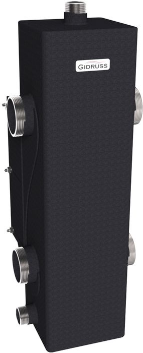 Гидрострелка от российского бренда GIDRUSS (ГИДРУСС) GR-250-50 позволяет обвязать каскады котлов для помещений до 2000 м2. Применяются вместе с твердотопливными котлами с внешним насосом, суммарная мощность которых не превышает 180 кВт. Максимальная общая мощность подключаемых электрических котлов — 240 кВт.
