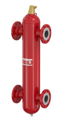 Корпус гидрострелки выполнен из высококачественной углеродистой стали ST 37/2, покрыт снаружи порошковой краской красного цвета RAL 3002.
