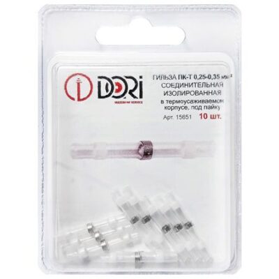 Главная » Строительство и ремонт гильза соединительная DORI изолированная 0,25-0,35мм.кв 10шт под пайку Просмотров 13 Макс. сечение жилы: 0,35 кв.мм Материал: сшитый полиэтилен Количество в упаковке: 10 шт Цвет: прозрачный DORI