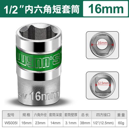 Головка Power Lion (Wynns), большой летучий ключ, ключ с храповым механизмом, быстрый ключ, шестигранная короткая головка, 16 мм