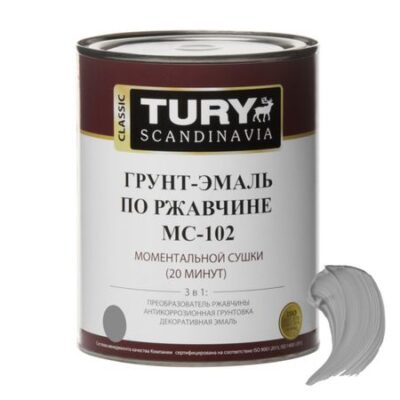 грунт-эмаль алкидная TURY MC-102 3в1 по ржавчине быстросохнущая 0,9кг серая, арт.ГрЭМС102с
