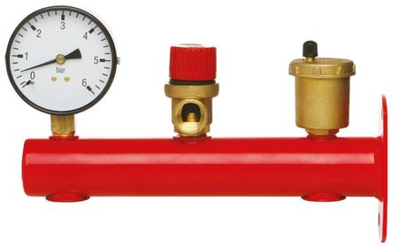 Состоит из воздухоотводчика, манометра и предохранительного клапана.