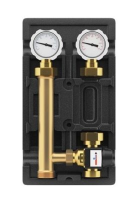Группа быстрого монтажа Wester (Вестер) DN25 с термостатическим клапаном, без насоса обеспечивает подачу и смешивание теплоносителя, идеально подходит для систем теплого пола. Устройство предполагает монтаж на распределительном коллекторе и отличается прочной конструкцией. В стандарный комплект включены термометры и обратный клапан.