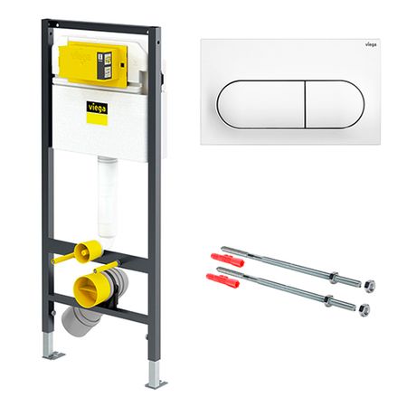В комплект входит: комплект креплений Модель 8180.73, панель смыва Prevista для унитазов Visign for Life 6 артикул 773 762 (пластик альпийский белый )рама (30х30) с порошковым напылением, бачок скрытого монтажа 3H, присоединительный комплект для унитаза, крепеж, выдвижные фиксирующиеся опоры для регулировки высоты, подключение воды R½ с задней стороны, регулируемое по глубине соединительное колено для унитаза DN90 из PP, эксцентриковый переходник DN90/100 из РР