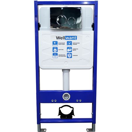 Инсталляция WellWant Standart 50 WWISI1110B для подвесного унитаза с бачком и клавишей смыва хром глянцевый. Установочный модуль предназначен для настенного монтажа. Он также подходит для реконструкции ванных комнат. Прочная конструкция монтажного модуля обеспечивает большую несущую способность и обладает повышенной стойкостью к коррозии. В состав изделия входит бачок, объем которого 6 л, и хром глянцевая клавиша. Энергосберегающий регулируемый двойной смыв в диапазоне 4,5 — 6 л.