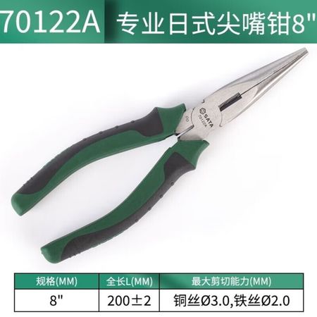 Инструменты SATA, 8-дюймовые плоскогубцы из хром-ванадиевой стали, профессиональные японские плоскогубцы с игольчатыми носами, 8 дюймов, 70122A