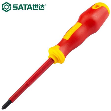 Изолированная крестовая отвертка SATA высокого напряжения. Отвертка VDE1000V. Отвертка с двухцветной ручкой серии T. # 1x80MM 61222.