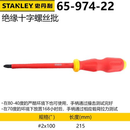Изолированная крестовая отвертка Stanley, отвертка для электрика, отвертка, инструмент для разборки и ремонта, одинарная 65-974-22