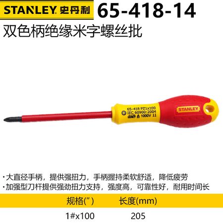 Изолированная отвертка Stanley с двухцветной ручкой, рисовидная отвертка, магнитная, устойчивая к высокому напряжению, 65-417-14