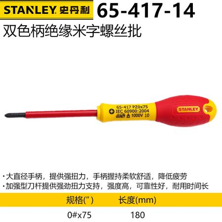 Изолированная отвертка Stanley с двухцветной ручкой, рисовидная отвертка, магнитная, устойчивая к высокому напряжению, 65-417-14