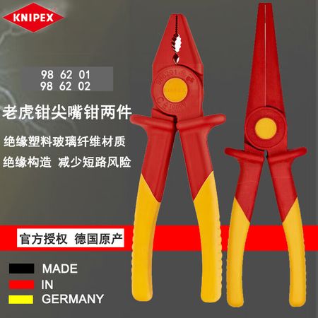 Изолированные пластиковые тиски KNIPEX, плоскогубцы, острогубцы, набор из двух предметов 986201/986202