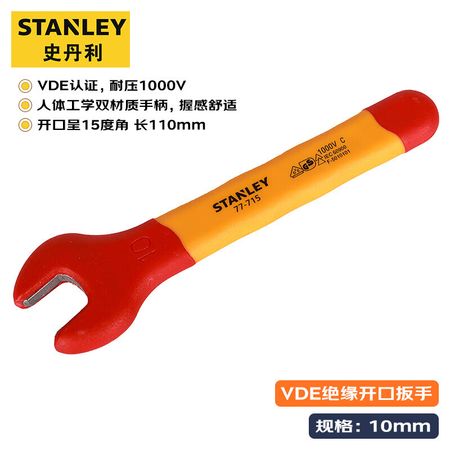 Изолированный рожковый ключ Stanley, устойчивый к высокому напряжению 1000 В, электрический ключ с одной головкой 10 мм STMT77715-23B