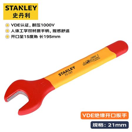 Изолированный рожковый ключ Stanley, устойчивый к высокому напряжению 1000 В, электрический ключ с одной головкой 21 мм STMT77727-23B