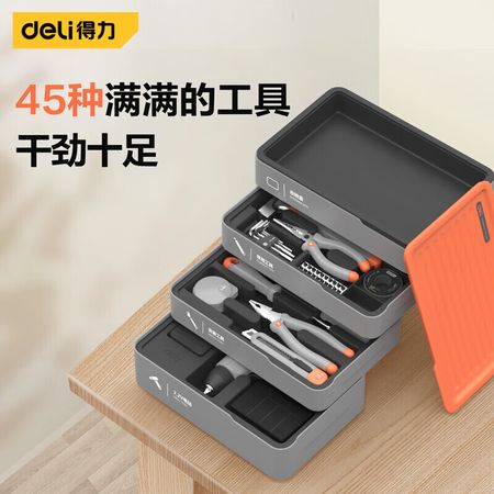 Ящик для бытовых инструментов Deli, полный набор электрической отвертки, шестигранный ключ, комбинация фурнитуры, набор инструментов для домашнего ремонта.