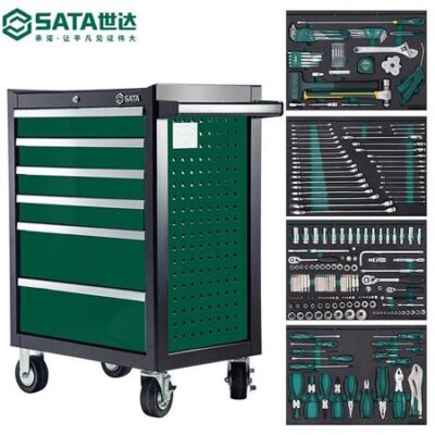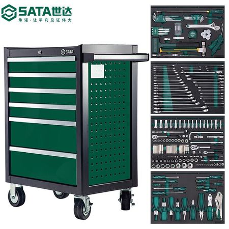 Ящик для инструментов для мобильного ремонта SATA, тележка для инструментов 09932, универсальный набор для ремонта машин и автомобилей, 242 предмета + тележка для инструментов