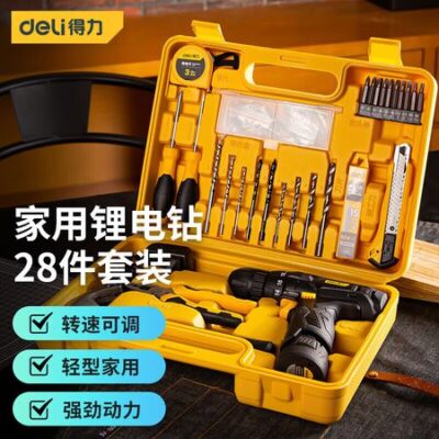 Электрическая ручная дрель, 28 предметов, комбинированный набор многофункциональных ящиков для бытовых инструментов DL1028L Deli