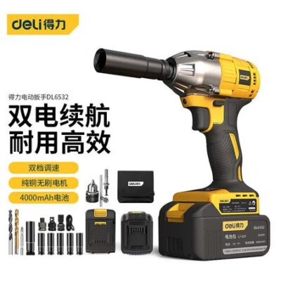 Электрический гаечный ключ Deli, бесщеточный, ударный гайковерт с зарядкой 20 В, электроинструмент, 4,0 Ач, двойная электрическая модель (DL6532)