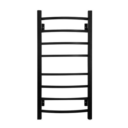 Energy Grand 800×400 RAL 9005 – электрический полотенцесушитель-лесенка черного матового цвета с выпуклыми перемычками прямоугольного сечения, выполненный из высококачественной пищевой нержавеющей стали.