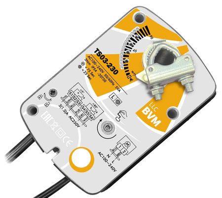 Электропривод BVM (БиВиЭм) TS03-230 с пружинным механизмом обеспечивает быструю реакцию на изменения воздушного потока, что позволяет поддерживать оптимальные условия в помещении в любое время. Компактные размеры привода идеальны для установки в системах вентиляции на небольшую воздушную заслонку 0.8 м2 площади.