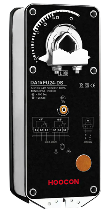 Модель Hoocon (Хогон) DA15FU24-DS — это мощный воздушный привод с пружинным возвратом от компании Hoocon. Предназначен для управления воздушными заслонками с площадью до 3 квадратных метров в системах вентиляции и кондиционирования. Он обладает высоким крутящим моментом в 15 Нм, а также оснащен двумя вспомогательными переключателями, которые входят в его комплектацию.