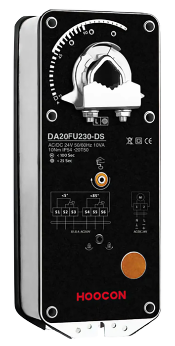 Воздушный электропривод Hoocon (Хогон) DA20FU230-DS разработан для работы при напряжении 220 В. Он обеспечивает надежное и точное позиционирование заслонки благодаря своей мощности и пружинному возврату. При отсутствии управляющего сигнала пружина обеспечивает автоматическое возвращение заслонки в исходное закрытое положение, что гарантирует безопасность и эффективность работы системы вентиляции и кондиционирования.