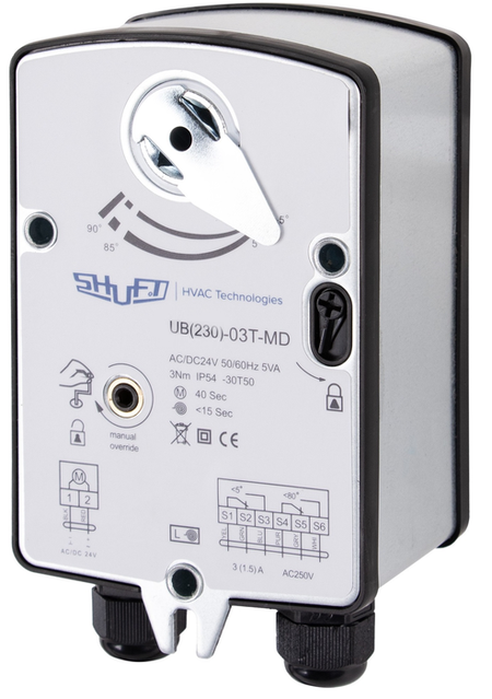 Электропривод Shuft (Шафт) UB(230)-03T-MD с возвратной пружиной представляет собой инновационное решение для управления противопожарными клапанами. Этот высокотехнологичный электропривод обеспечивает надежное и точное управление, что необходимо для обеспечения безопасности в экстренных ситуациях.