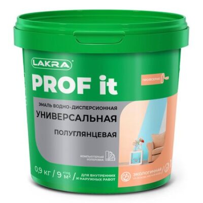 эмаль акриловая ЛАКРА Prof it универсальная полуглянцевая бесцветная 0,9кг, арт.0008115