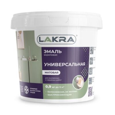 Главная » Строительство и ремонт эмаль акриловая ЛАКРА универсальная матовая белая 0,9кг, арт.0008107 Просмотров 12 Акриловая 0,9 кг Цвет: белый, матовый Для внутренних и наружных работ Расход: 100 гр/1 м.кв ЛАКРА
