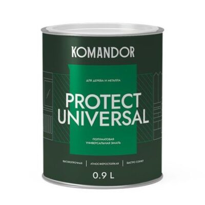 эмаль универсальная KOMANDOR Protect Universal база А 0,9 л полуматовая белая, арт.S1315001001