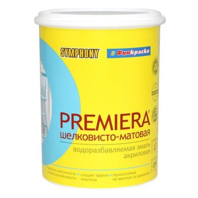 эмаль в/э SYMPHONY Premiera база А шелковисто матовая 0,9л белая, арт.1100418