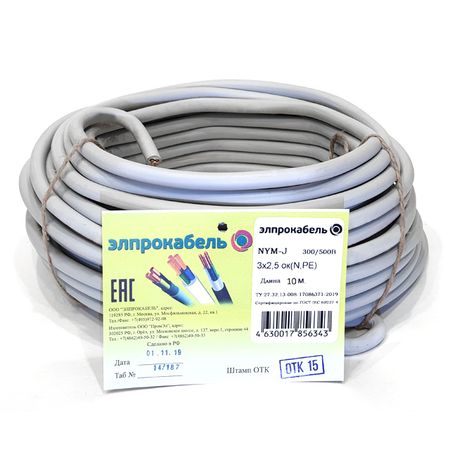 Главная » Строительство и ремонт кабель NYM-J ЭлПроКабель твердый круглый 3х2,5 ГОСТ 10м серый Просмотров 15 Тип кабеля: NYM Количество жил: 3 Сечение: 2,5 кв.мм. Метраж упаковки: 10 м. Форма кабеля: круглый Заземление: С заземляющим контактом ЭЛПРОКАБЕЛЬ