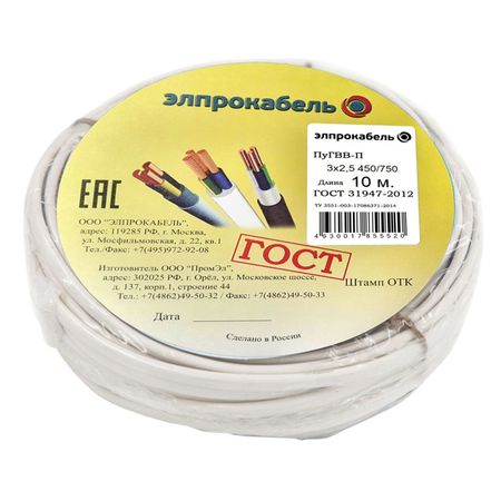 Главная » Строительство и ремонт кабель ПуГВВ-П ЭлПроКабель плоский 3х2,5 10 м белый Просмотров 12 Тип кабеля: ПуГВВ-П Количество жил: 3 шт. Сечение: 2,5 кв.мм. Метраж упаковки: 10 м. Форма кабеля: плоский Заземление: С заземляющим контактом ЭЛПРОКАБЕЛЬ