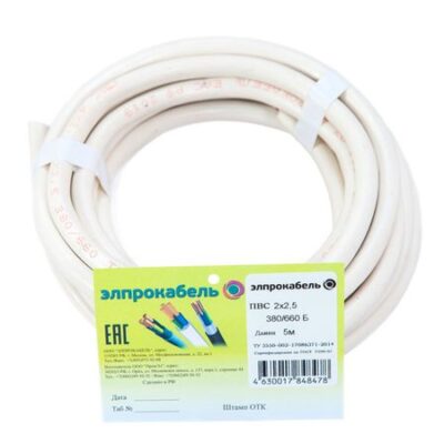 Главная » Строительство и ремонт кабель ПВС ЭлПроКабель гибкий круглый 2х2,5 ГОСТ 5м белый Просмотров 14 Тип кабеля: ПВС Количество жил: 2 Сечение: 2,5 кв.мм Метраж упаковки: 5м. Форма кабеля: круглый Заземление: Без заземляющего контакта ЭЛПРОКАБЕЛЬ
