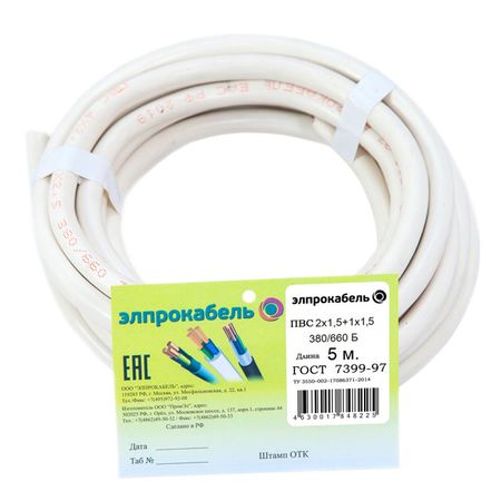 Главная » Строительство и ремонт кабель ПВС ЭлПроКабель гибкий круглый 3х1,5 ГОСТ 5м белый Просмотров 10 Тип кабеля: ПВС Количество жил: 3 Сечение: 1,5 кв.мм Метраж упаковки: 5м. Форма кабеля: круглый Заземление: С заземляющим контактом ЭЛПРОКАБЕЛЬ