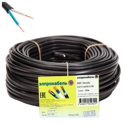 Главная » Строительство и ремонт кабель ВВГп-нг ЭлПроКабель твердый плоский негорючий 2х2,5 ГОСТ 50м черный Просмотров 10 Тип кабеля: ВВГ-Пнг Количество жил: 2 Сечение: 2,5 кв.мм Метраж упаковки: 50м. Форма кабеля: плоский Заземление: Без заземляющего контакта ЭЛПРОКАБЕЛЬ
