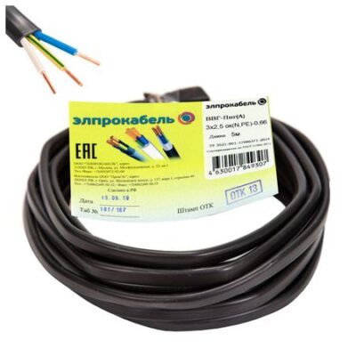Главная » Строительство и ремонт кабель ВВГп-нг ЭлПроКабель твердый плоский негорючий 3х2,5 ГОСТ 5м черный Просмотров 8 Тип кабеля: ВВГ-Пнг Количество жил: 3 Сечение: 2,5 кв.мм Метраж упаковки: 5м. Форма кабеля: плоский Заземление: С заземляющим контактом ЭЛПРОКАБЕЛЬ