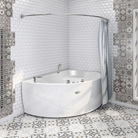 Карниз для шторки на ванну «Алари» — угловой карниз радиальной формы с размерами 168х120 см. Его изгиб копирует контуры одноименной ванны, что обеспечивает практичность конструкции. Карниз выглядит модно и прекрасно смотрится в любом интерьере. Также по своим размерам и изгибу он подходит для ванн Астория и Альбена.