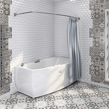 Карниз для ванны «Аризона» — карниз фронтально-торцевого типа длиной 170 см и шириной 65 см в части, соответствующей узкой стороне ванны. Карниз красив, удобен и долговечен. Оригинальная угловая форма наилучшим образом подходит для ванны «Аризона», а также для ванн асимметричного типа. Материал штанги — нержавеющая сталь, которая обеспечивает прочность, долговечность, защиту от коррозии и провисания. Оптимальный диаметр профиля 25 мм подходит для колец и крючков любого типа.