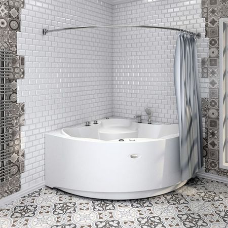 Карниз для шторки на ванну «Верона» — угловой симметричный карниз с размерами 149х149 см. Его изгиб копирует контуры одноименной ванны, что обеспечивает практичность конструкции. Карниз выглядит модно и прекрасно смотрится в любом интерьере. Также по своим размерам и изгибу он подходит для ванны Сандра.