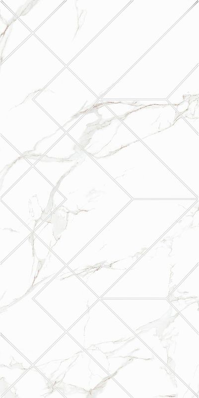 Керамическая плитка Eurotile (Rus) Amuletto White Decor 5 AM 0105 M настенная 25х50 см под мрамор, с геометрическим орнаментом.