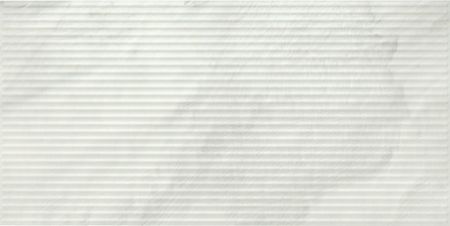 Керамогранит Ape Alexandria Klebb White мatt rect A040476 60х120 см под мрамор с рельефными полосами.
