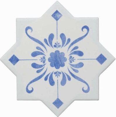 Керамогранит Cevica Beсolors Star Dec. Stencil Electric Blue CV67392 13,25х13,25 см под моноколор в форме восьмиконечной звезды с орнаментом.