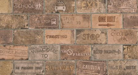 Керамогранит Cir New York Road Signs Mix Chelsea 1048423 10х20 см поверхность матовая, коричневого цвета с имитацией кирпичной кладки с надписями.