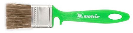 Флейцевая кисть Matrix Color Line РАБОТЫ ПО ДЕРЕВУ шириной 35 мм и толщиной 10 мм используется с любыми видами пропиток, клеев, грунтовок и других деревообрабатывающих составов. Комбинированная щетина расщеплена на кончиках и содержит натуральные волокна, поэтому кисть хорошо впитывает и отдает лакокрасочные материалы. Искусственный ворс предохраняет щетину от деформации при использовании водных составов. Высокая плотность щетины обеспечивает хорошую продуктивность работ. Преимущества Щетина обладает высокой износостойкостью, поэтому инструмент прослужит долго. Пластиковые клинья, эпоксидный клей уникальной рецептуры и прочный бандаж обеспечивают надежное скрепление щетины с рукояткой и устойчивость к повышенным нагрузкам. Клинья не подвержены воздействию воды и агрессивных ЛКМ, это позволяет продлить срок службы кисти. Антикоррозионное покрытие предохраняет бандаж от образования ржавчины. Эргономичная рукоятка не вызывает усталости при длительном окрашивании. На рукоятке предусмотрено отверстие для подвешивания, поэтому кисть можно просушивать и хранить в вертикальном положении. Специальный вырез на ручке позволяет зафиксировать кисть на емкости с ЛКМ: банке, ведре, ванночке.