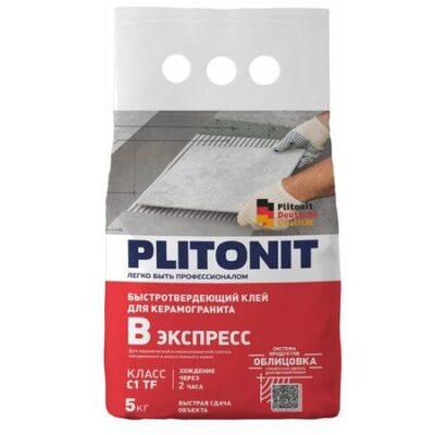 Главная » Строительство и ремонт клей плиточный PLITONIT B Экспресс быстротвердеющий 5кг Просмотров 7 Вб Вес: 5 кг Быстротвердеющий клей для керамической плитки, натурального и искусственного камня Для внутренних и наружных работ ПЛИТОНИТ