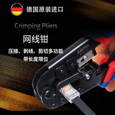 Клещи для обжима KNIPEX, импортированные из Германии. Клещи для сетевых кабелей 6P8P, клещи для обжима сетевых кабелей (для европейских разъемов передачи данных) 975110
