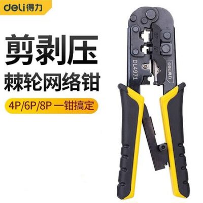 Клещи для сетевого кабеля Deli, линия для зачистки и резки под давлением, полный набор, многофункциональный обжимной инструмент, клещи для сетевого кабеля с храповым механизмом DL4971